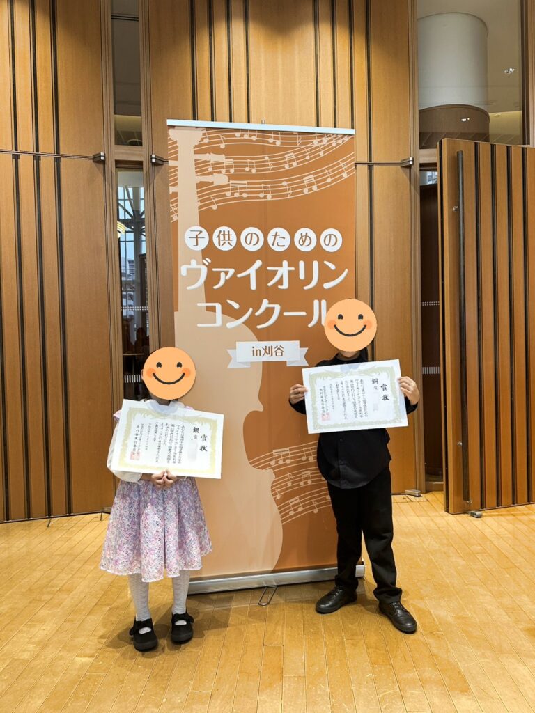 弾き合い会終了でほっとするのも束の間、12/24に「子供のためのヴァイオリンコンクール in 刈谷」が開催され今回コロラートからは生徒2人がエントリー、銀賞銅賞をいただきました♪